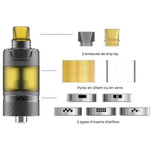 Le Precisio GT a une capacité de 3,7 ml, et son remplissage par le haut est particulièrement aisé grâce à un simple dévissage de son top cap. L'atomiseur est équipé d'origine d'un réservoir en ultem, mais un réservoir en pyrex est également inclus, vous permettant de choisir celui qui vous convient le mieux.